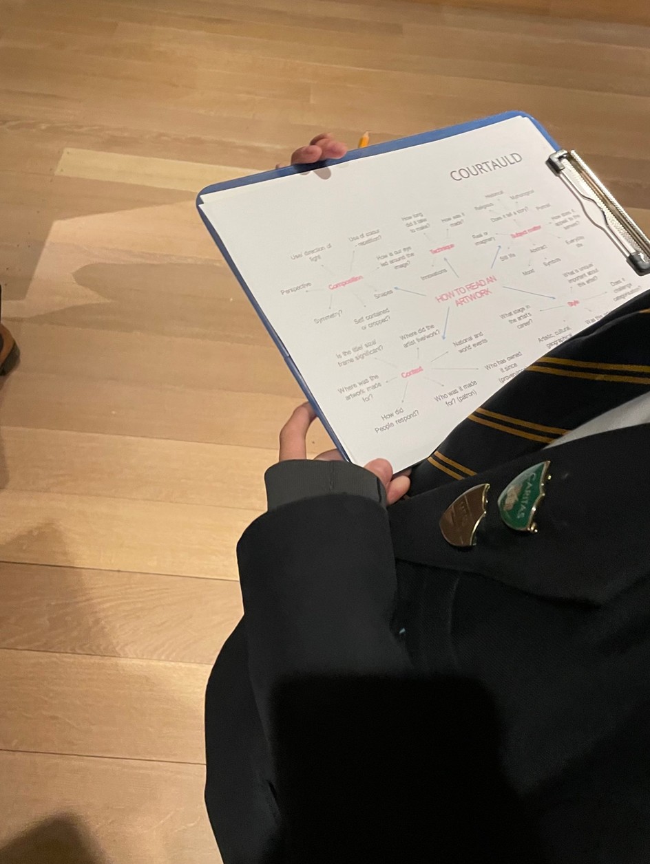 Year 7 artists were invited to learn about Art History at the Courtauld Institute of Art. They explored the gallery, and had a 1:1 session with learning educator Fran, students learnt about some of the galleries oldest pieces, their origins and how to discover and de-code artworks through visual analysis methods.